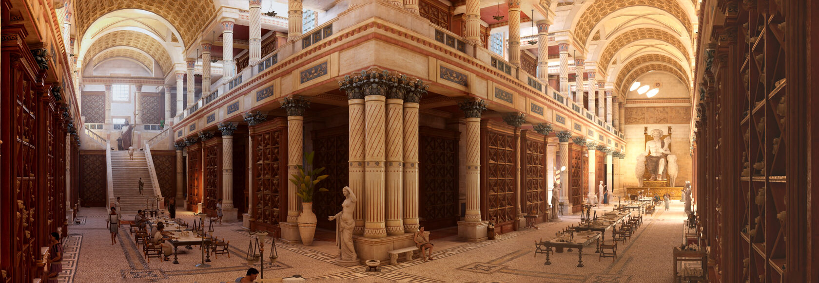 Считается, что она была основана в 290-е-280-е гг. до н.э. в египетской Александрии и ее первым покровителем стал египетский царь Птолемей I, соратник и один из наследников Александра Македонского. Библиотека была частью огромного религиозного комплекса, посвященного девяти музам, покровительницам искусств – и называвшегося в их честь Мусейон.